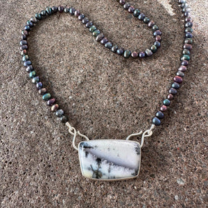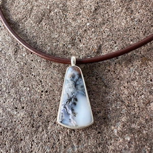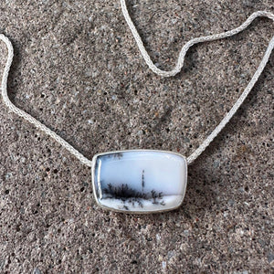 Continue ShoppingDendrite Agate Opal is a beautiful black and white opalescent stone with fern, moss or tree-like scenes formed by the natural inclusions of metallic manganese and iron.